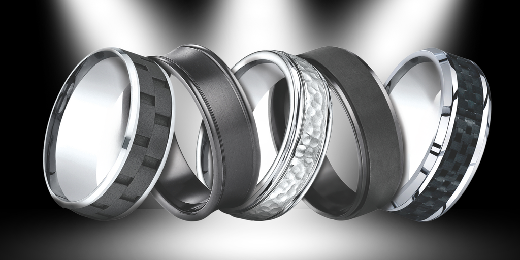 We carry a wide variety of fashion rings and wedding bands in different designs, materials, and sizes, 4-20. We offer rings made from traditional metals like gold, silver, and platinum, as well as alternative materials like titanium, tungsten, cobalt and ceramic. We also offer rings with precious or semi-precious gemstones like sapphire, onyx, and diamond, or customizable engraving options.
