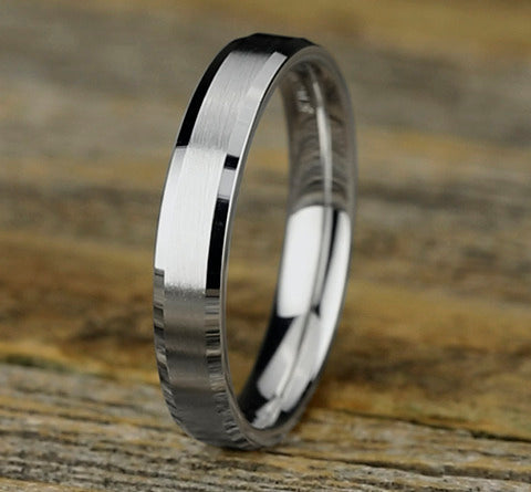 The Rowan 14K White Gold Polished Men's Wedding Band Beveled Edges 4mm