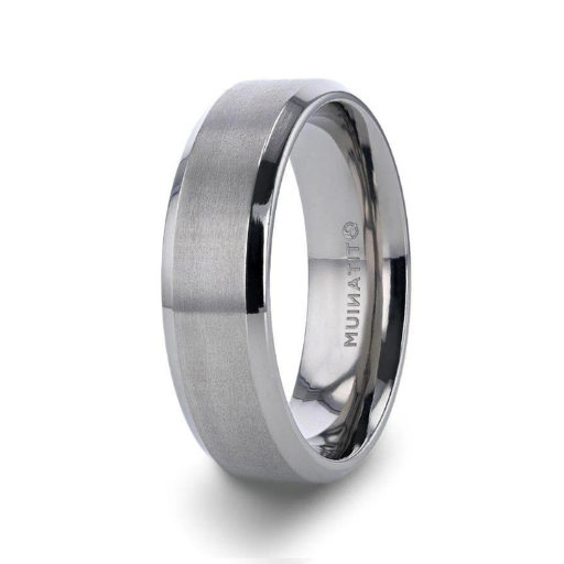 The Shire Titanium Brushed Center Men’s Flat Ring Polished Beveled Edges 6mm or 8mm