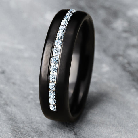 The Abe Black Titanium 20 Diamond Channel Set Mens Wedding Ring 6.5mm