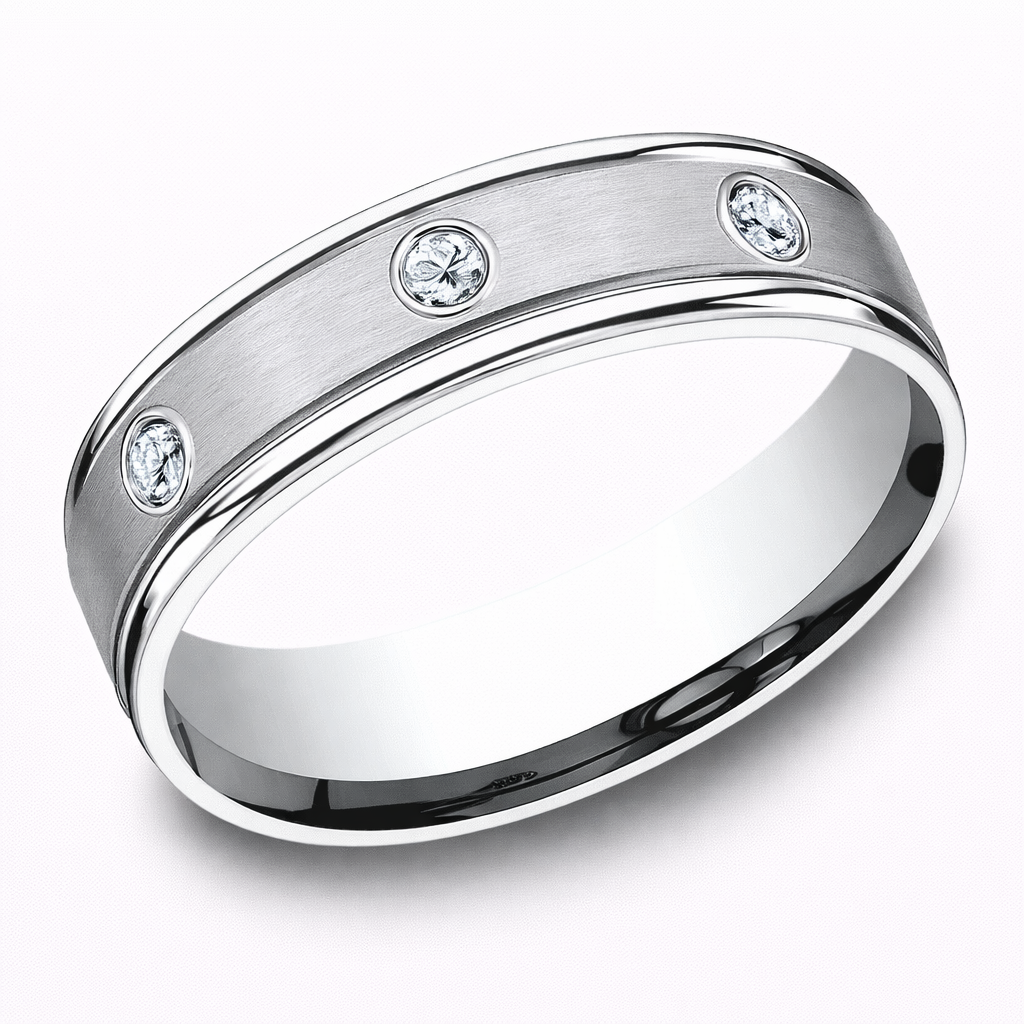The Langston Satin 6mm Men’s 950-Platinum Bezel-Set 8 Diamonds Wedding Band