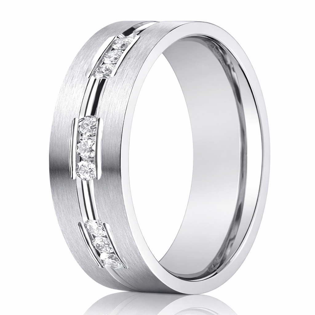 The Sterling 14K White Gold Wedding Band, 9 Channel Set Diamonds 6mm