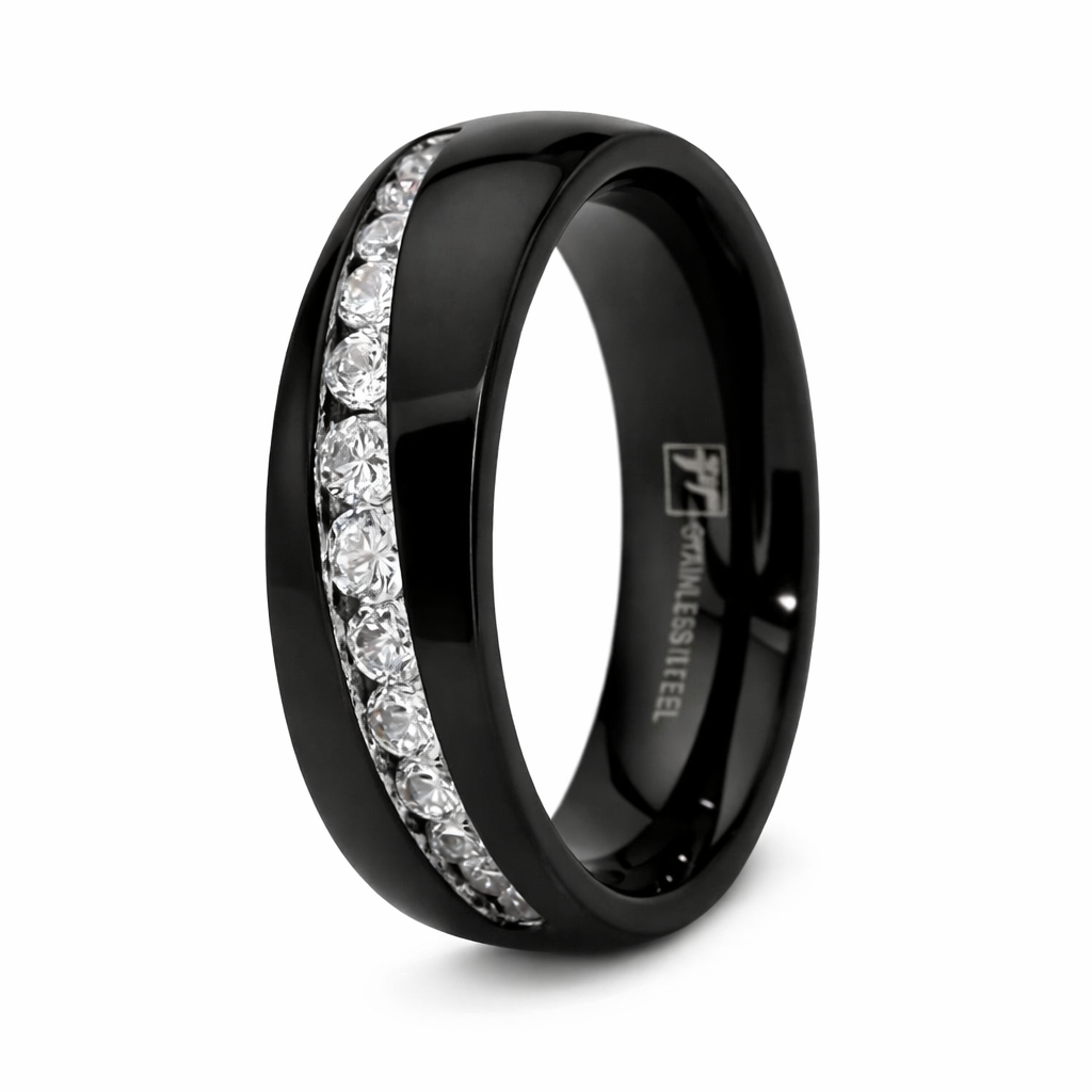 The Brilliance Black Stainless Steel Wedding Band with Offset 12 CZ's - 7mm
