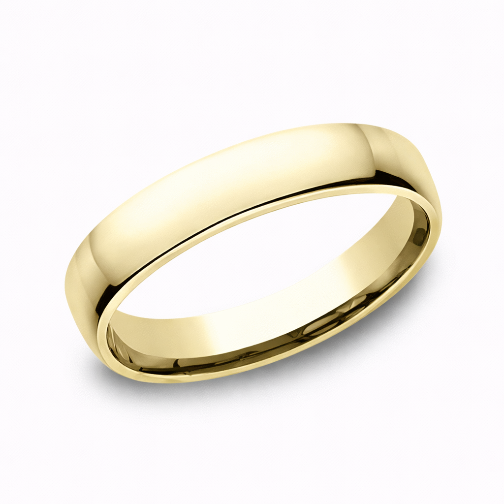 The Prime is clean, compact, and made to last. Crafted from solid 18 K yellow gold, this 4.5 mm men’s wedding ring features a high-polish finish that highlights the gold’s natural warmth and luster. Its heavy comfort fit gives the ring extra presence and weight while maintaining a smooth, rounded interior for all-day comfort. The slightly slimmer width keeps the profile refined and easy to wear, while still delivering a timeless, confident look.