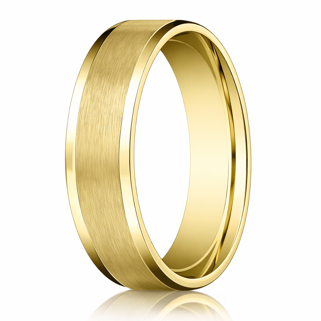 The Chancellor balances stately gold with a crisp architectural edge. Cast in solid 18 K yellow gold, this 6 mm men’s ring sets a satin‑brushed center inside polished, beveled borders, giving the band a clean line of contrast that feels refined without excess flash. The beveled edges catch the light at just the right angle, while a comfort‑fit interior lets the ring slip on easily and sit smoothly from daily schedules to milestone celebrations.