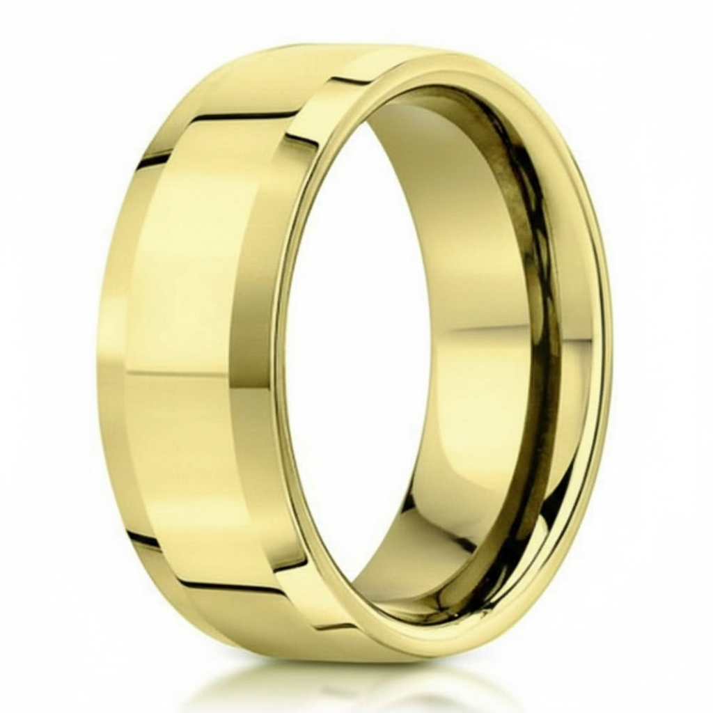 The Highland pairs warm yellow gold with a crisp, tailored edge. Cast in solid 18 K gold, this 6 mm men’s wedding band features gently beveled sides that catch the light, framing a smooth polished center for a clean, understated shine. The silhouette stays slim and comfortable, and a comfort‑fit interior helps the ring slide on easily and stay effortless through long workdays, weekend outings, and milestone celebrations.