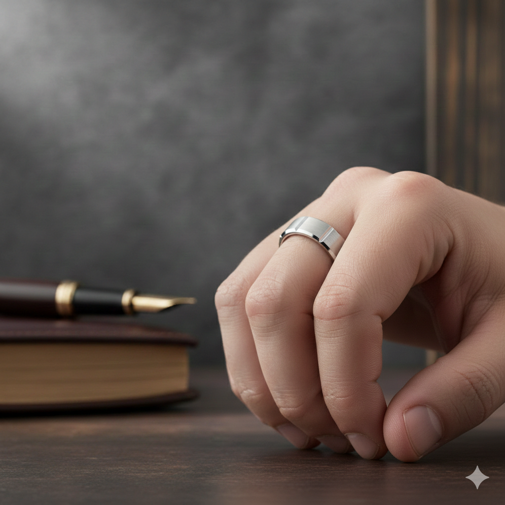 Seeking a statement piece that complements your everyday ensemble or uniform? The Pillar takes architectural lines and casts them in cool white gold. Milled from solid 18 K white gold, this 6 mm men’s ring features a series of vertical grooves that add depth and structure without overwhelming the clean silhouette. A high‑polish finish lets the ridges catch the light from every angle, while the comfort‑fit interior helps the band slide on easily and stay comfortable—from office hours to evening events.