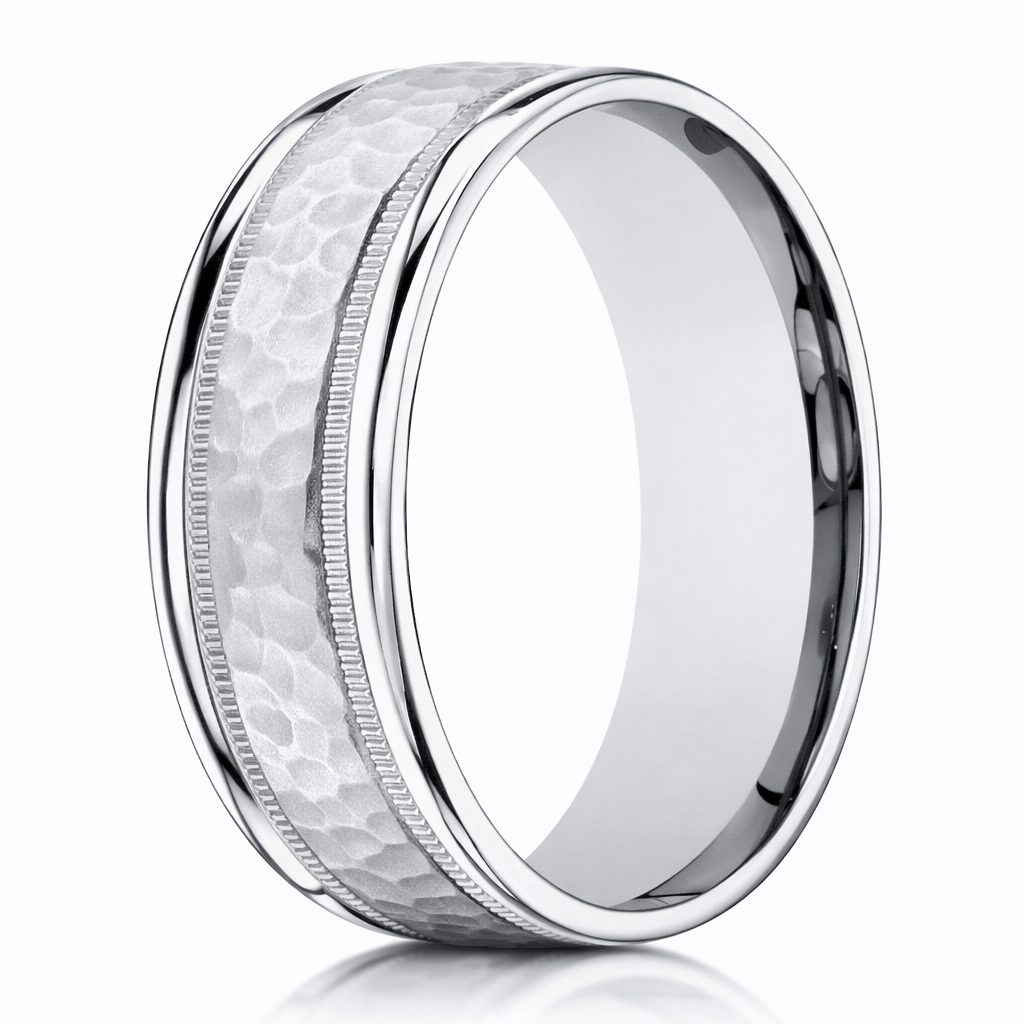 The Baxter White Hammered Center 18K White Gold Designer Ring for Men | 6mm