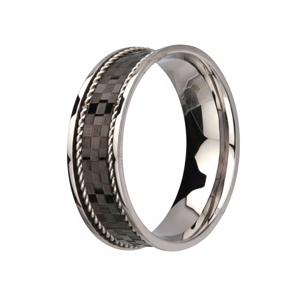 The Gridlock Men's Black Checker Pattern ring with Braid Steel Edges Ring-8mm