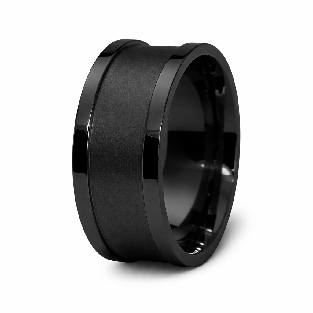 The Midnight Matte Black or Grey Stainless Steel Ring with Satin Edges - 10mm