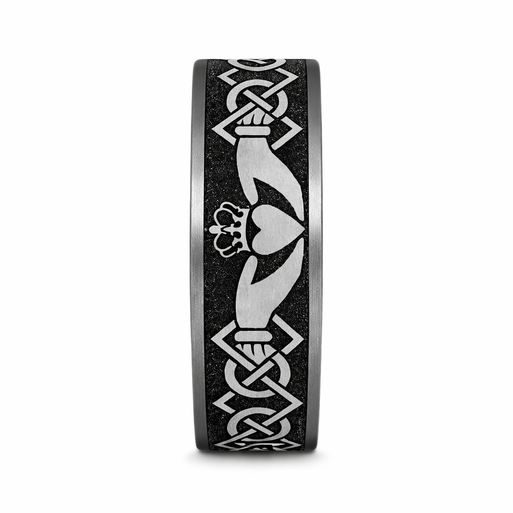The Claddagh 7.5mm Comfort fit Grey and Black Titanium and Tantalum Claddagh Design
