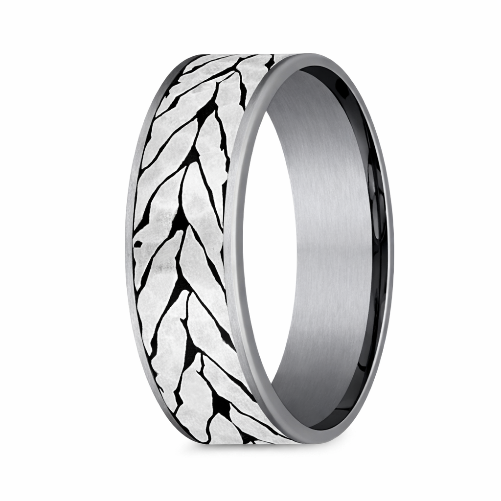 The Medallion 7.5mm Tantalum and Titanium Hammered Chevron Pattern Ring